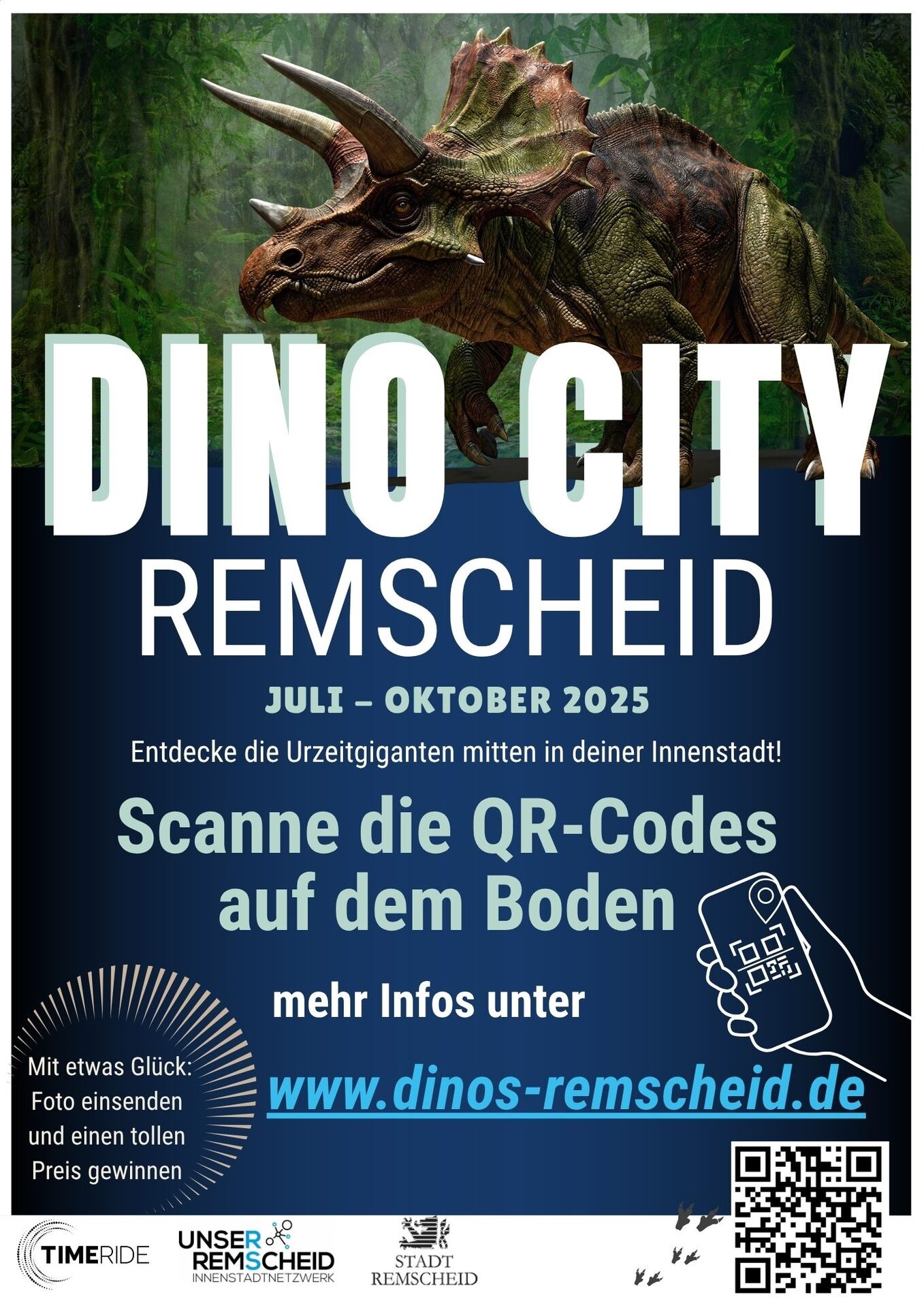Remscheid bekommt tierischen Zuwachs: Die Innenstadt verwandelt sich bis Mitte Oktober in eine interaktive Erlebniszone. 18 verschiedene Dinosaurier können über Augmented Reality an ausgewählten Punkten der Alleestraße entdeckt werden. Möglich wird das durch Dino City Remscheid – ein innovatives Projekt zur Belebung der Innenstadt. Und das pünktlich zu den Sommerferien!