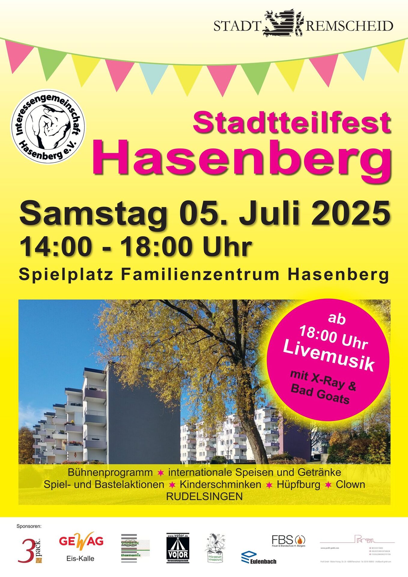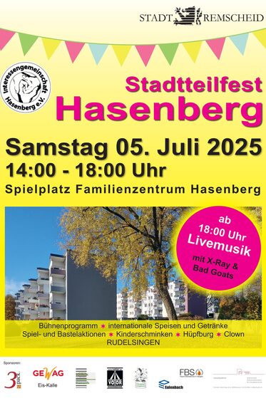 Veranstalter ist die Stadtteilkonferenz Hasenberg, die Federführung haben die IG Hasenberg und die Jugendförderung der Stadt Remscheid. Gemeinsam mit vielen Hasenberger Akteuren sorgen sie an diesem Tag für ein buntes Familienprogramm mit Spiel- und Kreativangeboten, einem Bühnenprogramm und leckeren Speisen und Getränken.
