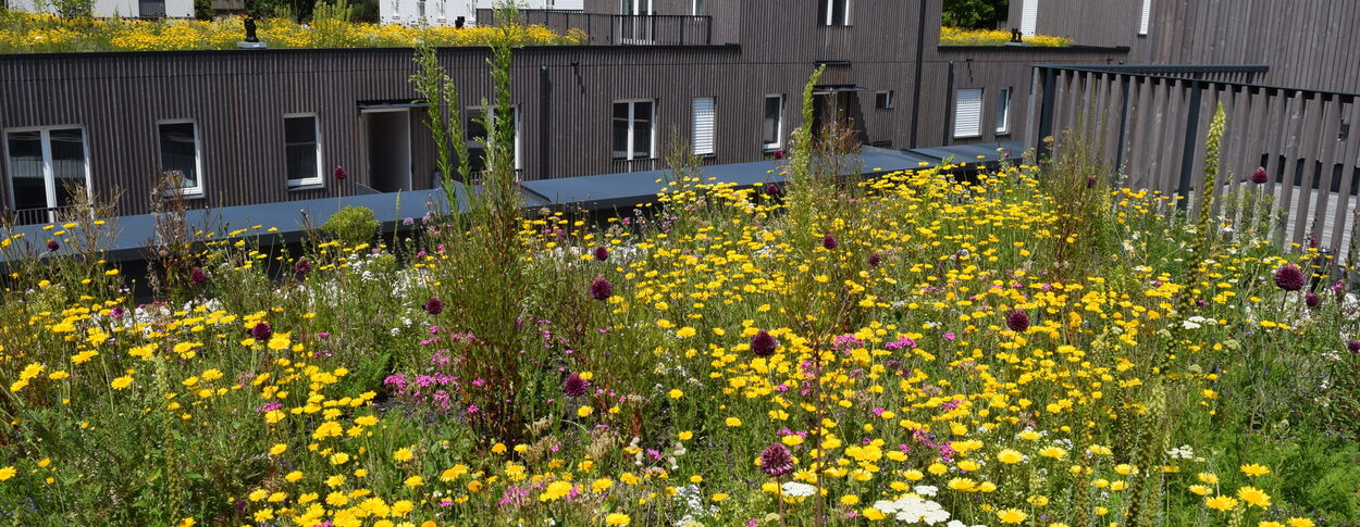 Begrünungen wirken lärmreduzierend. Zudem bieten sie Nahrung und Lebensraum für unterschiedliche Tierarten und leisten damit einen Beitrag zur Artenvielfalt.