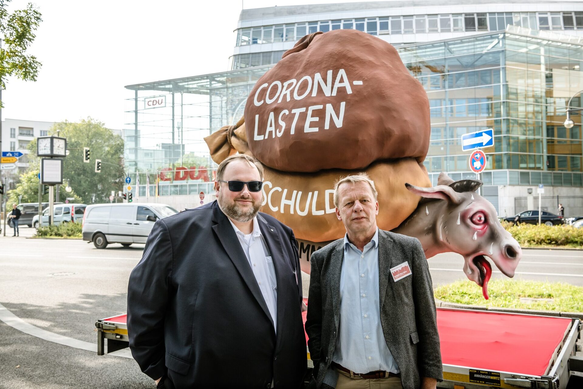 CDU/CSU, SPD, Grüne, FDP und Linke haben am Montag (11. Oktober) Besuch von einem Esel und Vertreter:innen von 70 Städten und Kreisen erhalten. Der Esel war überlebensgroß auf einem Wagen zu sehen und trug gewaltige Säcke auf dem Rücken, die ihn in die Knie zwingen. Die Vertreter:innen der Kommunen überreichten den Parteien symbolisch einen Stein aus dem Lastensack. Darauf steht: Deutschland braucht für seine Zukunftsaufgaben handlungsfähige Kommunen.