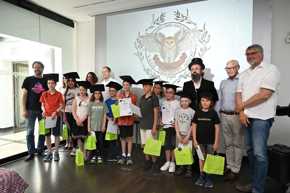 Das Labor X im Deutschen Röntgen-Museum war bis auf den letzten Platz gefüllt, einige Zuschauer mussten sogar stehen, als am Samstag, den 17. Juni, elf der zwölf teilnehmenden Kinder der Pilotphase der Wilhelm-Conrad-Röntgen-Juniorakademie ihre Expertenvorträge hielten. Eines der Kinder war leider kurzfristig erkrankt.