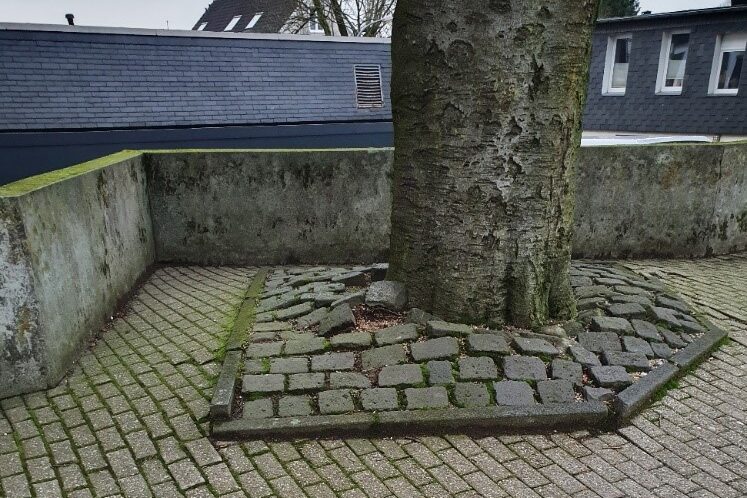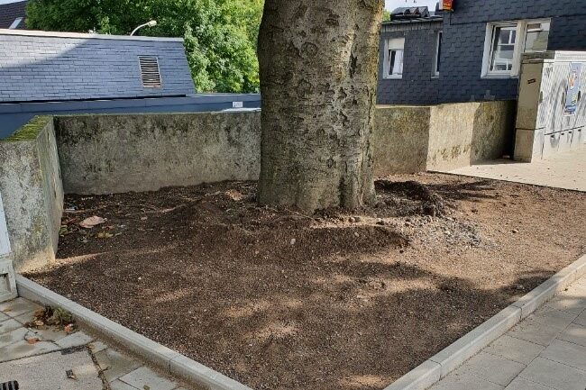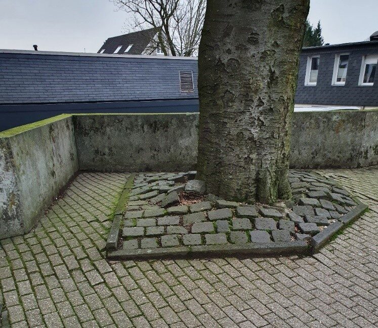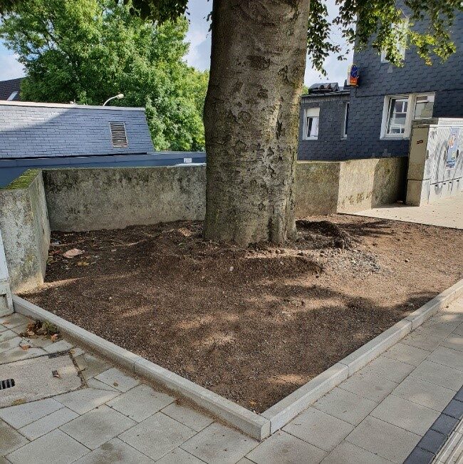 Im Bereich der umgestalteten Fußgängerquerung befindet sich eine große alte Buche, deren Baumscheibe vor längerer Zeit mit Großpflastersteinen umgeben worden ist. Die Pflastersteine im Bereich der Baumscheibe wurden in der Zwischenzeit durch das Wurzelwerk nach oben gedrückt. „Im Zuge der Bauarbeiten haben wir die Möglichkeit genutzt, um den Platz für die alte Buche an der Baumscheibe zu vergrößern. Darüber hinaus haben wir den Bereich, der von Großpflastersteinen verdeckt war, entsiegelt und mit einem speziellen Substrat befüllt“ berichtet Gunter Breidbach von den Technischen Betrieben Remscheid.