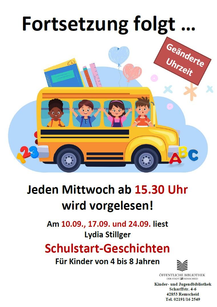 Bitte beachten Sie die geänderte Uhrzeit. Ab sofort findet das Vorlesen schon um 15:30 Uhr statt.