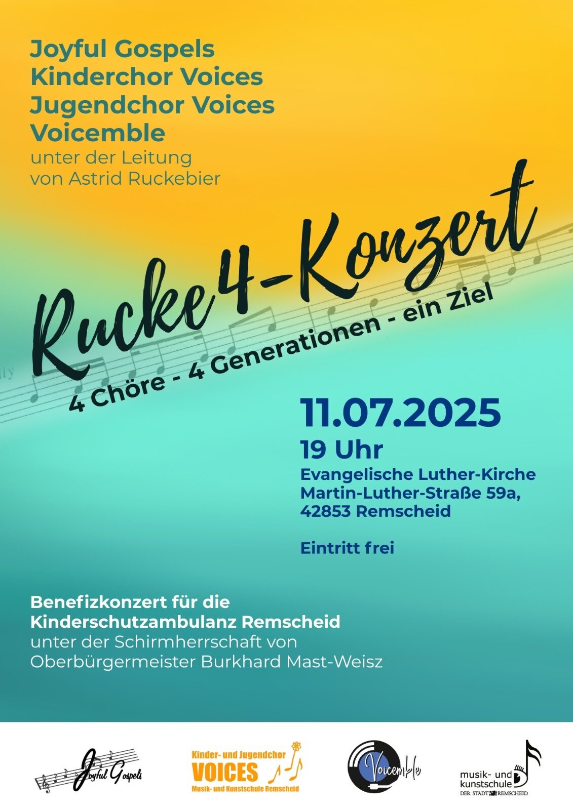 Die im Bergischen Land bekannte Dozentin der Musik- und Kunstschule Remscheid sowie Kreis-Chorleiterin Astrid Ruckebier lädt zu einem ganz besonderen Konzert ein. Dieses findet am 11. Juli um 19 Uhr (Einlass: 18:30 Uhr) in der Lutherkirche Remscheid statt.